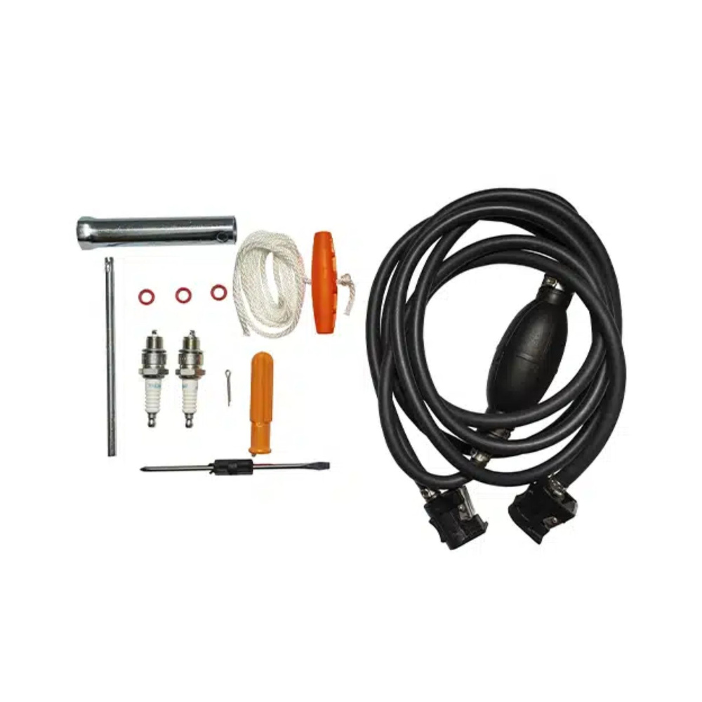 мотор, переносной бак 24л, шланг, груша, паспорт двигателя, руков-во по эксплуатации, ЗИП