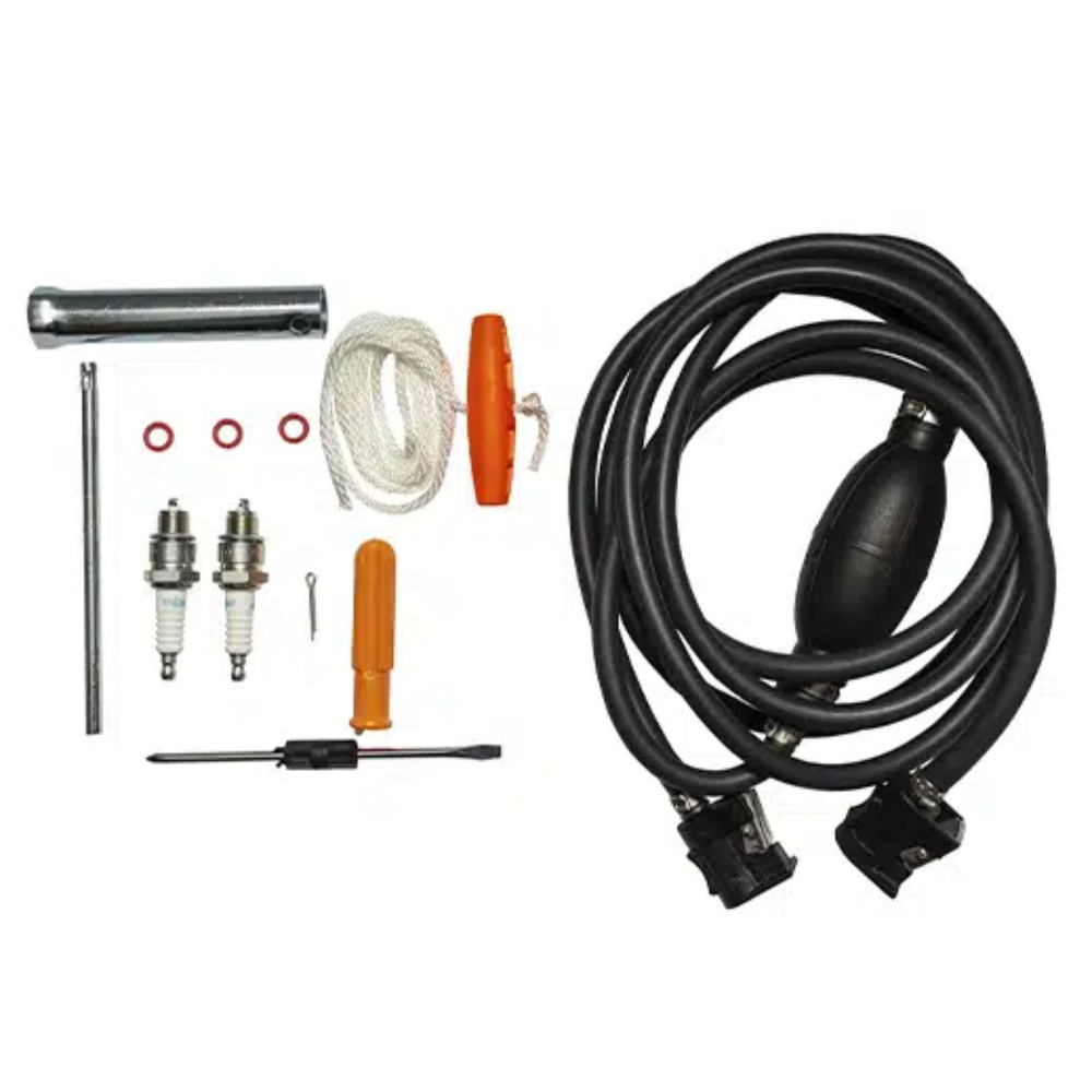 мотор, переносной бак 12л, шланг, груша, паспорт двигателя, руков-во по эксплуатации, ЗИП